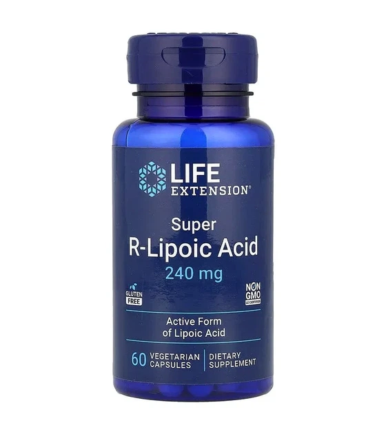 Суперліпоєва кислота, Super R-Lipoic Acid, Life Extension, 240 мг, 60 капсул на рослинній основі