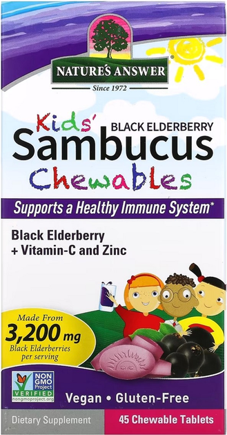 Чорна бузина для дітей з вітаміном С та цинком Kid's Sambucus Chewables Nature's Answer, 45 жувальних таблеток
