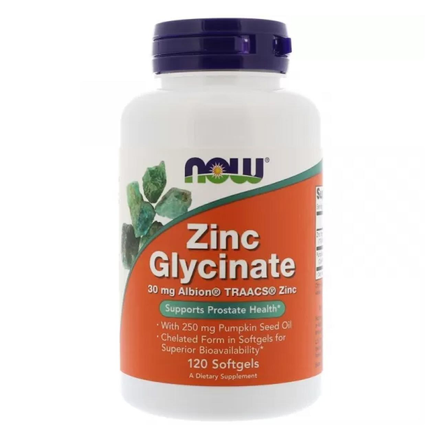 Гліцинат цинку з гарбузовою олією (Zinc Glycinate) 120 капсул NOW-01554
