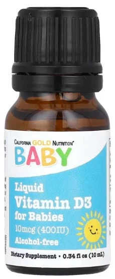 Вітамін D3 у краплях для малюків(Vitamin D3 for Babies),10 мкг (400 МО), 10 мл California Gold Nutrition