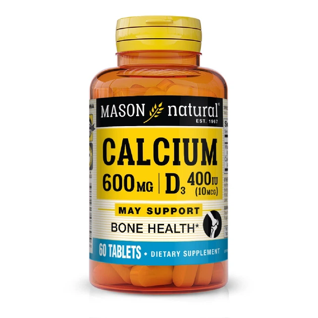 Кальцій 600 мг + вітамін D3, Calcium 600мг Plus Vitamin D3, Mason Natural, 60 таблеток