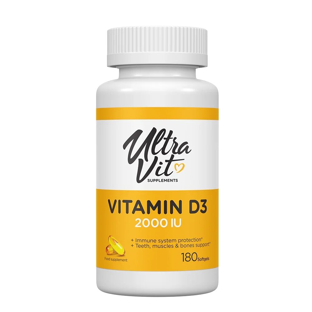 VPLab UltraVit Vitamin D3 2000 IU – джерело холекальциферолу в м'яких капсулах; підтримує імунітет, здоров'я кісток та м'язів, сприяючи оптимальному засвоєнню кальцію. Особливості VPLab UltraVit Vitamin D3 2000 IU: - М'які желатинові капсули з олією для легкого проковтування та засвоєння. - Висока біодоступність формули, що забезпечує ефективне використання вітаміну D організмом. - Комплексна
