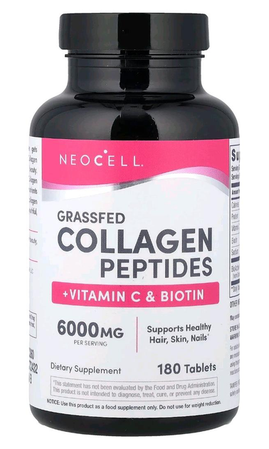 Пептиди колагену + вітамін С та біотин, Collagen + Vitamin C & Biotin, NeoCell, супер, 180 таблеток