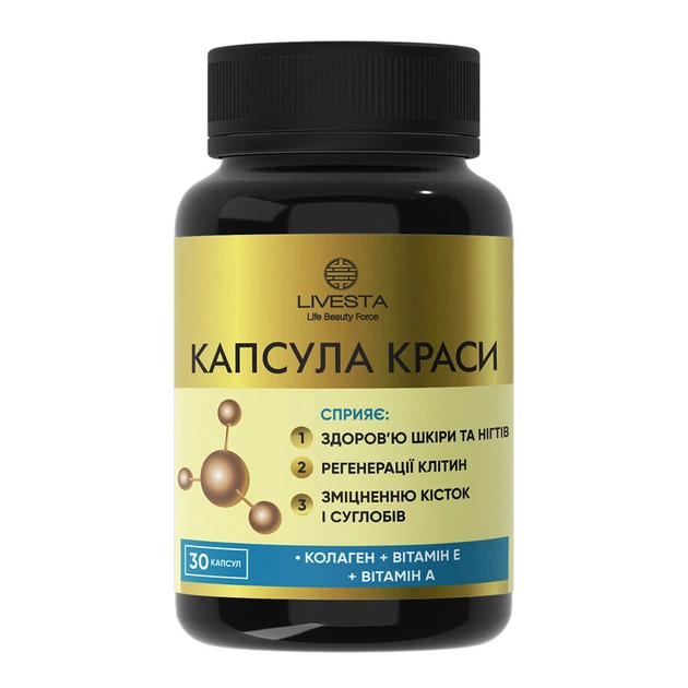 Дієтична добавка з колагеном для шкіри та суглобів "Капсула краси" LIVESTA 30 капсул