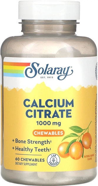 Цитрат кальцію Calcium Citrate Solaray 1000 мг смак апельсина 60 жувальних таблеток (SOR-04584)
