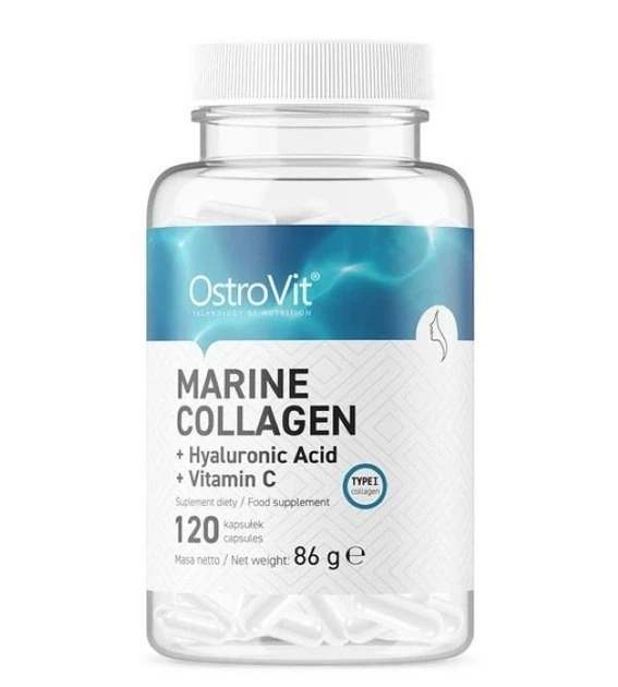 Морський колаген з гіалуроновою кислотою та вітаміном C Ostrovit Marine Collagen + Hyaluronic Acid + Vitamin C 120 caps