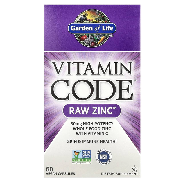 Цинк хелатний із вітаміном C Garden of Life Vitamin Code RAW Zinc 60 капсул