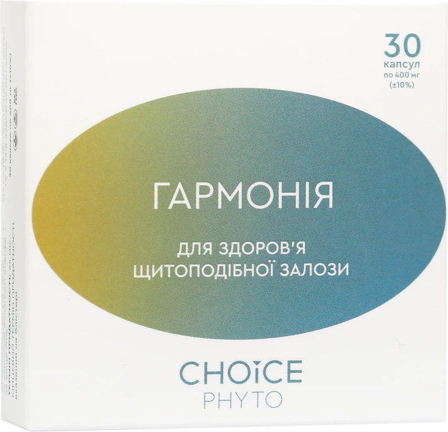 Для нормалізації функцій щитовидної залози Гармонія 400 мг натуральна домішка Choice 30 капсул (224686837)
