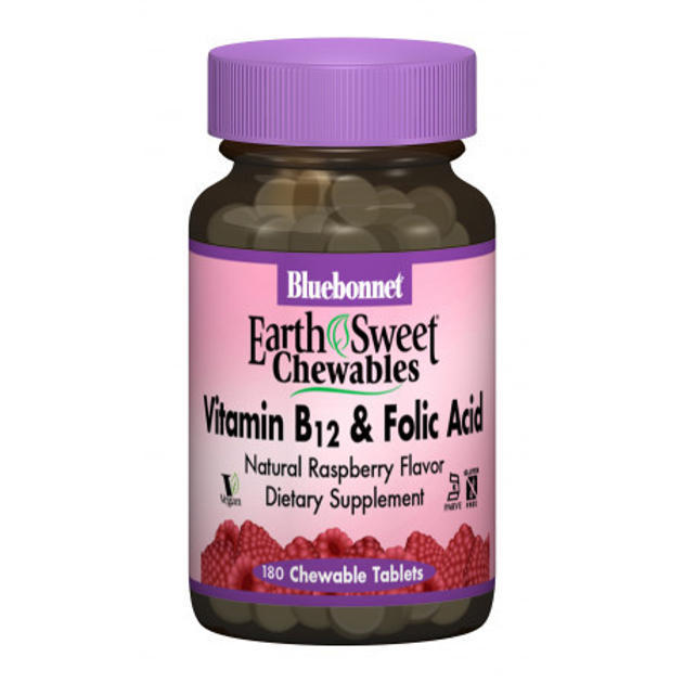 Вітаміни Bluebonnet Nutrition Earth Sweet Chewables Vitamin В12 Folic Acid 180 таблеток (333099)