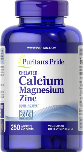 Кальцій Магній Цинк хелат, Chelated Calcium Magnesium Zinс, Puritan's Pride, 250 капсул (PTP-14293)
