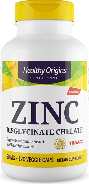 Цинк бісгліцинат Healthy Origins Zinc 50 мг 120 капсул в упаковці (ARE-573849)