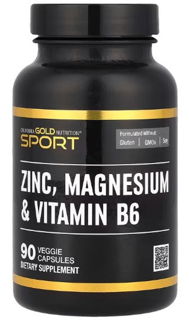 Цинк, магній і вітамін B6 (Zinc, Magnesiun, Vitamin B6), 90 вегетаріанських капсул, California Gold Nutrition Sport