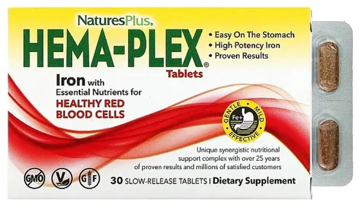 Комплек вітамінів та мінералів с залізом Nature's Plus Hema-Plex Iron 30 таблеток