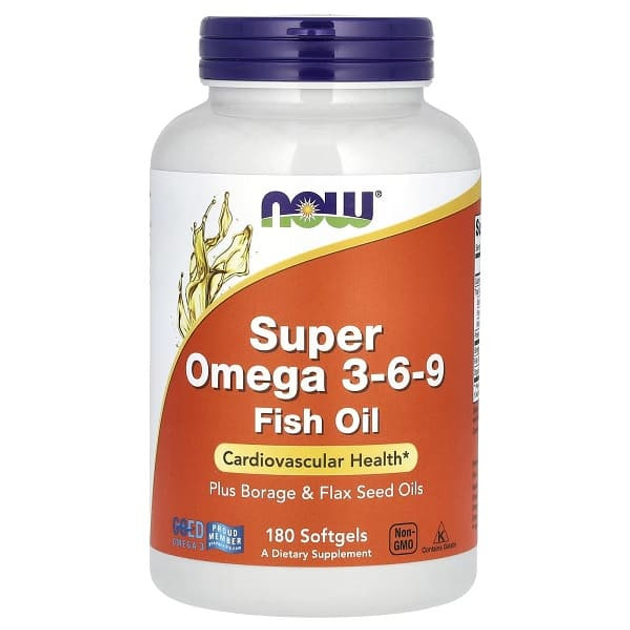 Комплекс незамінних жирних кислот Now Super Omega 3-6-9 1200 мг 180 капсул (102931)