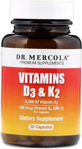 Вітаміни D3 і K2, Vitamins D3 & K2, Dr. Mercola 30 капсул (813006016919)