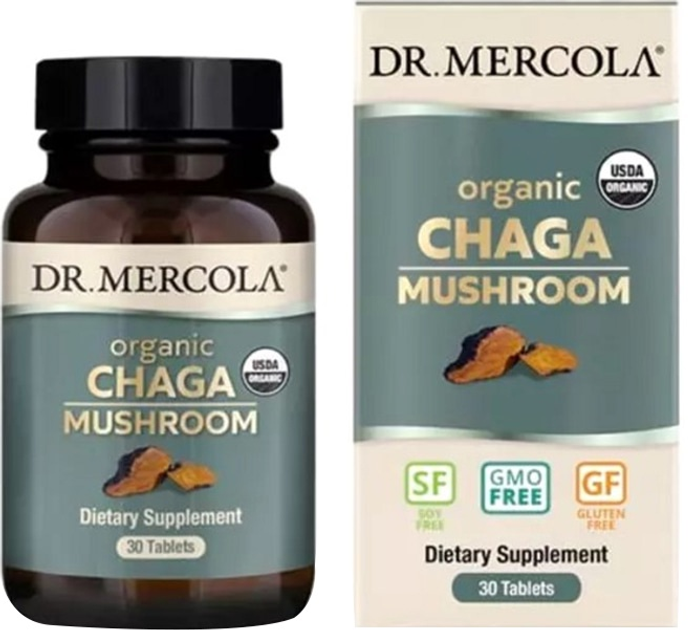 Органічний гриб Чага, Organic Chaga Mushroom, Dr. Mercola 30 таблеток (810487032636)