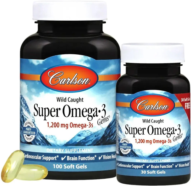 Жирні кислоти Carlson Labs Супер Омега-3 Gems 100 + 30 желатинових капсул (88395153402)
