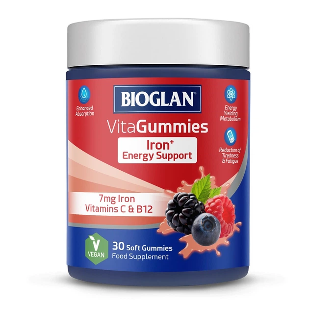 Bioglan Vitagummies Iron, Vitamin C, B12 Біоглан Залізо, Вітамін С та В12 для дорослих та дітей від 12 років желейки 30 шт.