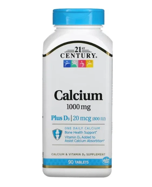 Кальцій + вітамін D3, Calcium Plus D3, 1000 мг/800 МО, 21st Century, 90 таблеток