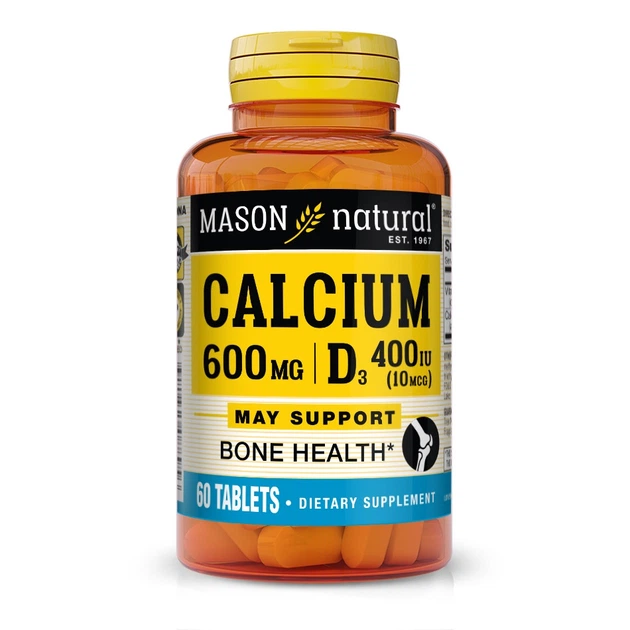 Вітаміни та мінерали Calcium 600 mg Plus Vitamin D3, 60 таблеток Mason Natural 000314901