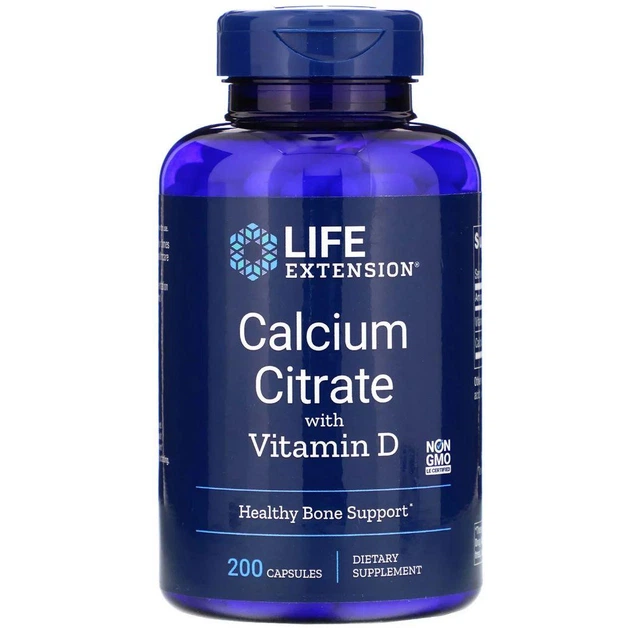 Цитрат кальцію з вітаміном Д Life Extension Calcium Citrate with Vitamin D, 200 кап.(LEX-19632)
