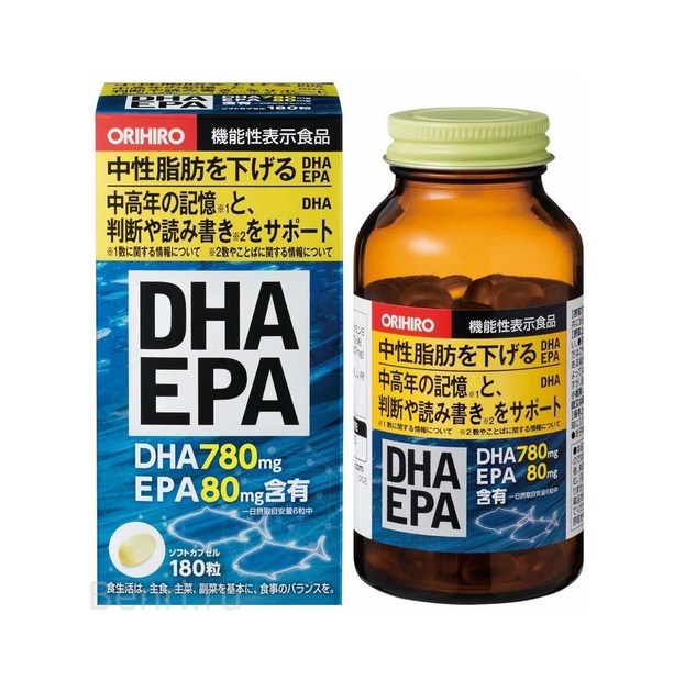 EPA DHA Омега-3 для підтримки Когнітивних функцій мозку Пам'яті 180 капсул на 30 днів прийому Orihiro