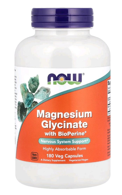 Магній гліцинат Now Foods з BioPerine 180 капсул