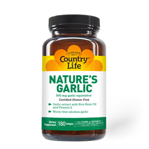 Натуральна добавка Country Life Nature's Garlic, 180 капсул