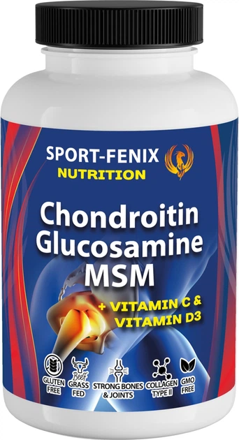 Хондропротектор SPORT-FENIX NUTRITION Хондроїтин, Глюкозамін, ЧСЧ + Вітаміні С&D3 90 капсул (4820259600075)