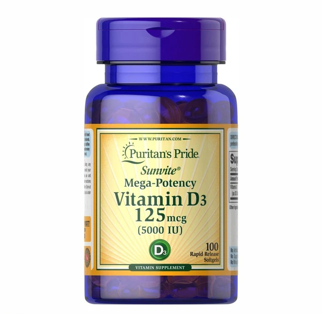 Вітаміни Puritan's Pride Vitamin D3 125 мкг 5000 IU 100 капсул