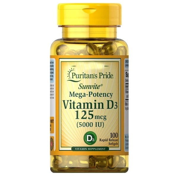 Вітамін Д-3 Puritan's Pride Vitamin D-3 125 мкг (5000 IU) Sunvite Mega Potency, 100 таблеток (100-99-0283453-20)