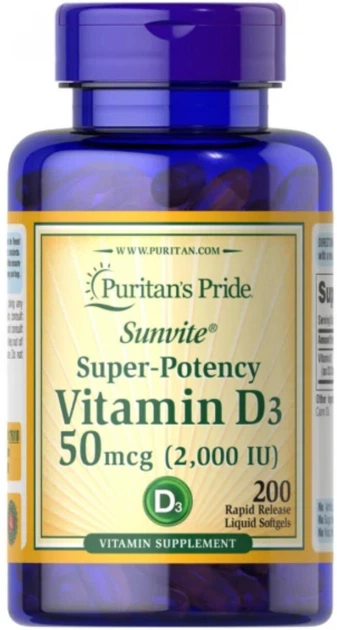 Вітамін Д3 Puritan's Pride Vitamin D3 2000 IU 200 гел капс