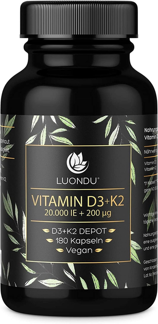 Вітамін D3+K2 200 мкг Luondu 180 капсул