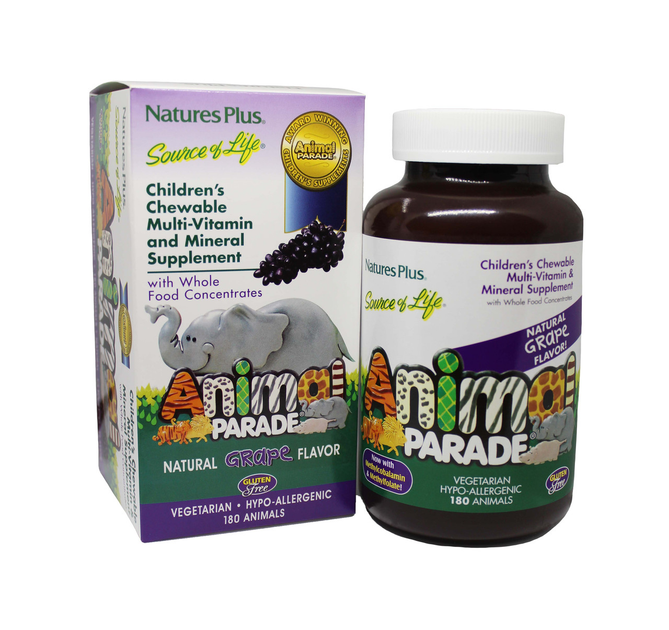 Мультивітаміни для Дітей Natures Plus Animal Parade 180 жувальних таблеток виноград