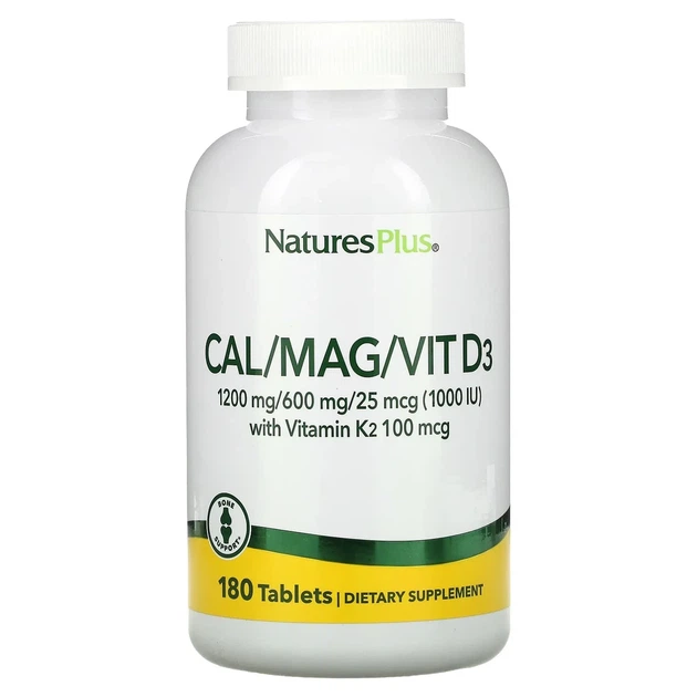 Кальцій, магній і вітамін D3 і K2, Cal / Mag / Vit D3, Vitamin K2, Nature's Plus, 180 таблеток