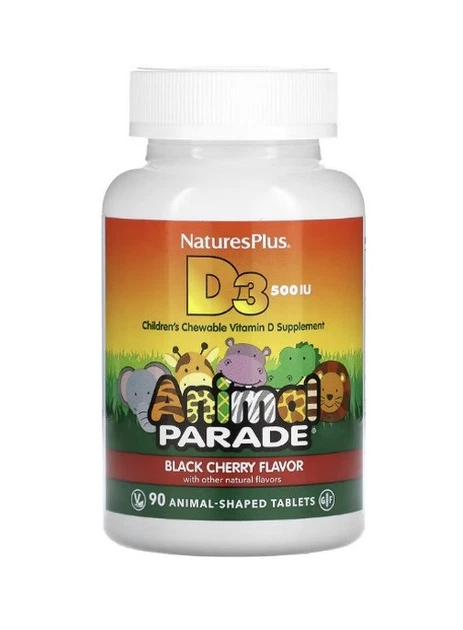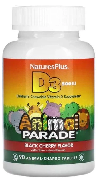 Вітамін D3 NaturesPlus, Source of Life Animal Parade для дітей смак чорної вишні, 500 МО, 90 таблеток у формі тварин
