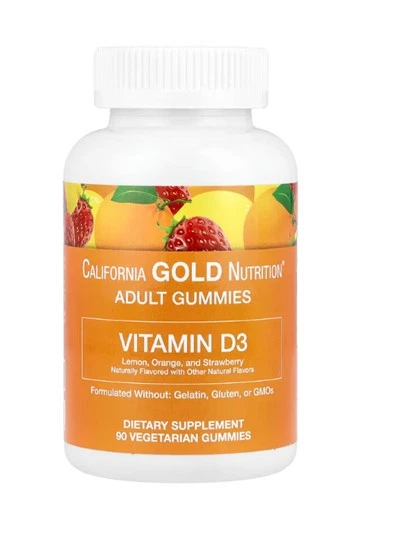 California Gold Nutrition, жувальний вітамін D3, зі смаком лимона, апельсина та полуниці, 2000 МО, 90 жувальних мармеладок