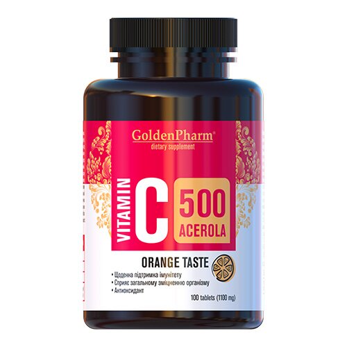 Витамины и минералы Golden Pharm Vitamin C 500 mg with Acerola, 100 таблеток Апельсин CN15564-1