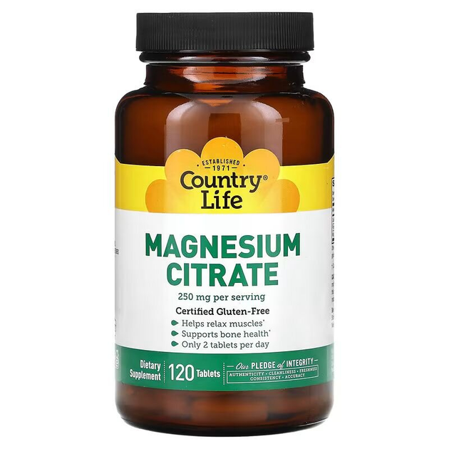Магній, кальцій та фосфор Country Life Magnesium Citrate, 120 таблеток для підтримки кісток