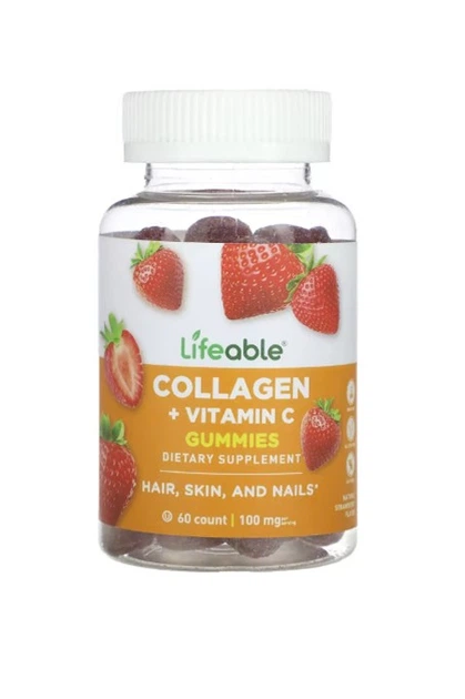 Collagen Lifeable, жувальні таблетки з колагеном і вітаміном C, натуральна полуниця, 60 жувальних таблеток