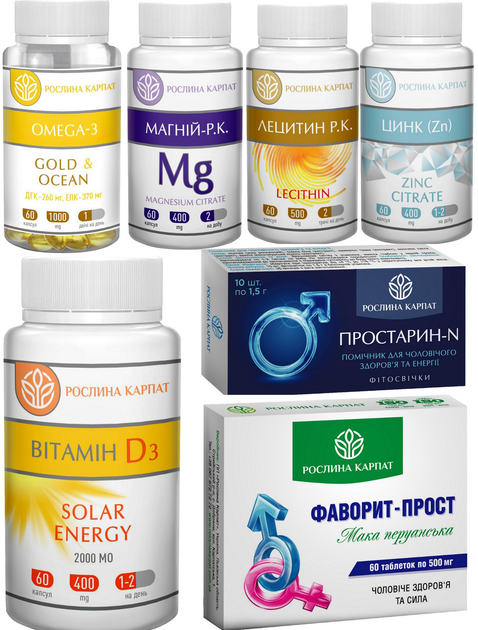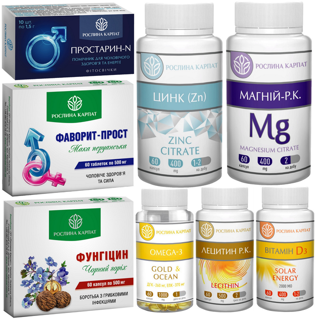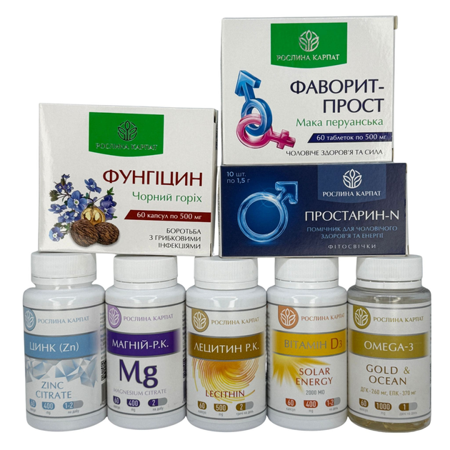 Програма для чоловіків - Фаворит, Цинк, Магній, Простарин, Лецитин, Омега-3, Вітамін Д3, Фунгіцин Рослина Карпат (485499)