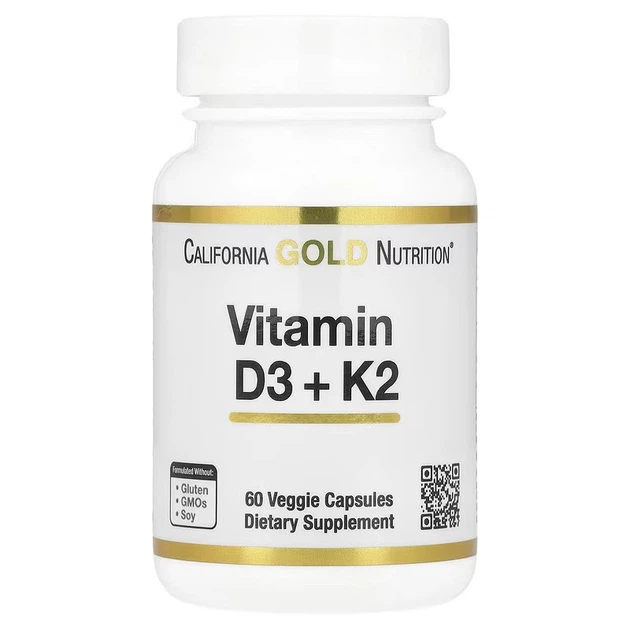 Вітаміні D3 та K2, California Gold Nutrition, 60 рослинних капсул