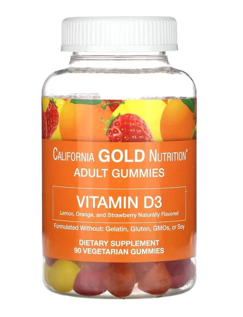 Жувальний вітамін D3 зі смаком лимона апельсина та полуниці 25 мкг (1000 МО) California Gold Nutrition 90 мармеладок