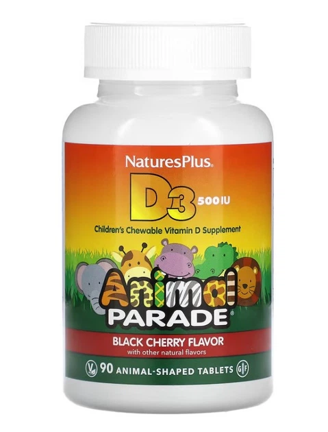 Дитячий вітамін D3 зі смаком чорної вишні 500 МО NaturesPlus Animal Parade 90 таблеток у формі тварин