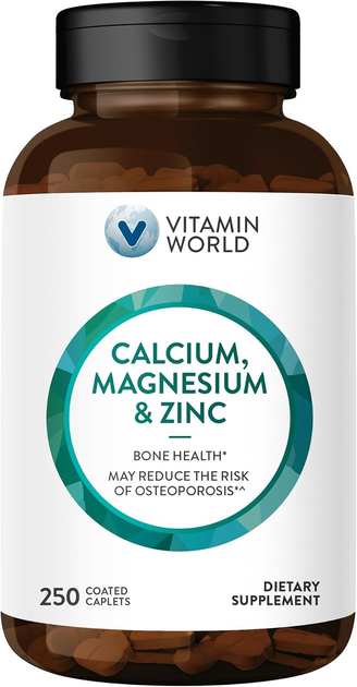 Добавка преміум-класу кальцій магній та цинк Vitamin World Calcium Magnesium Zinc 250 таблеток