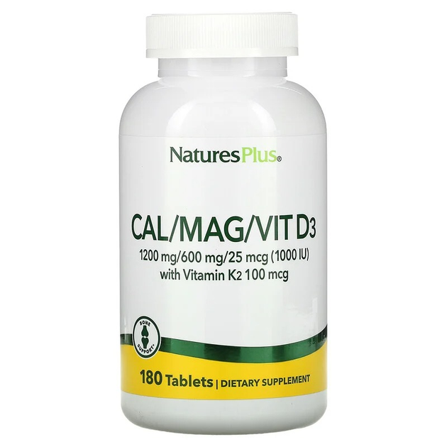 Кальцій, магній і вітамін D3 і K2, Cal/Mag/Vit D3, Vitamin K2, nature's Plus, 180 таблеток (NAP-33647)