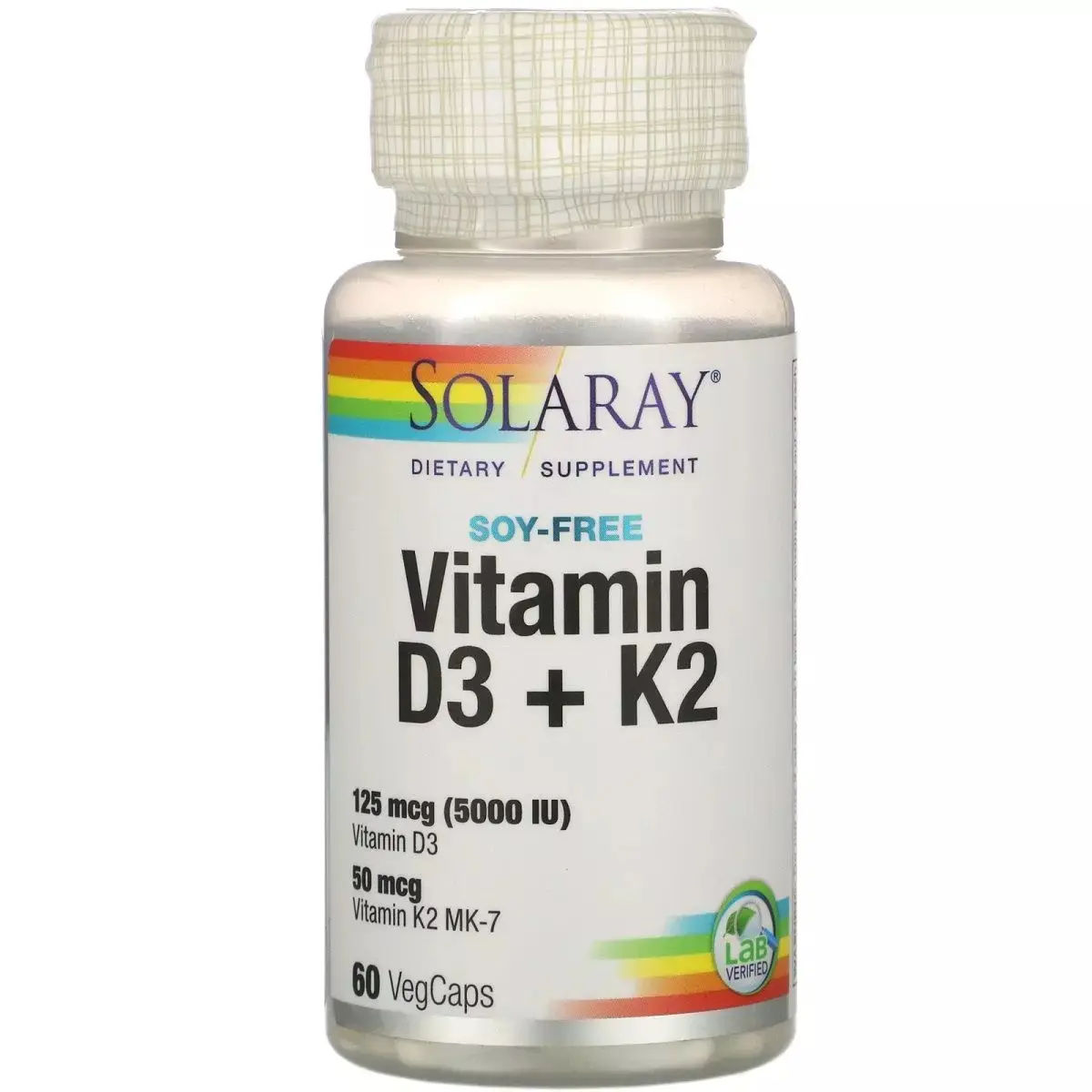 Вітамін D3 + K2 Solaray Soy-Free 60 вегетаріанських капсул