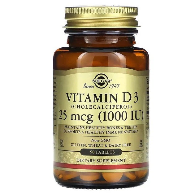 Вітамін Д3 Solgar, Vitamin D3 Cholecalciferol, 25 мкг, 1000 IU 90 таблеток