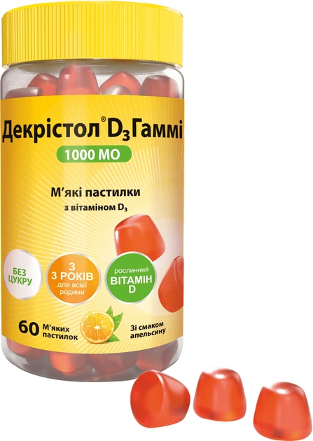 Вітамін Д3 Декрістол D3 Гаммі дієтична добавка м’які пастилки №60 (VI00922)