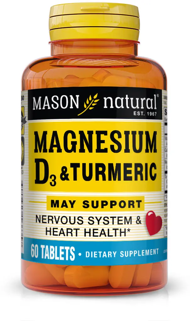 Вітаміни та мінерали Mason Natural Magnesium & Vitamin D3 With Turmeric, 60 таблеток